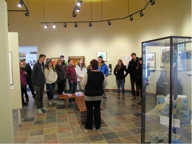 Voici quelques premières images. Le montage des œuvres hier avec le personnel de la galerie, et Sylvia tenant une fiche signalétique. Les élèves de l'ÉSC Ste-Marie qui participent à l'atelier donné par Sylvia.