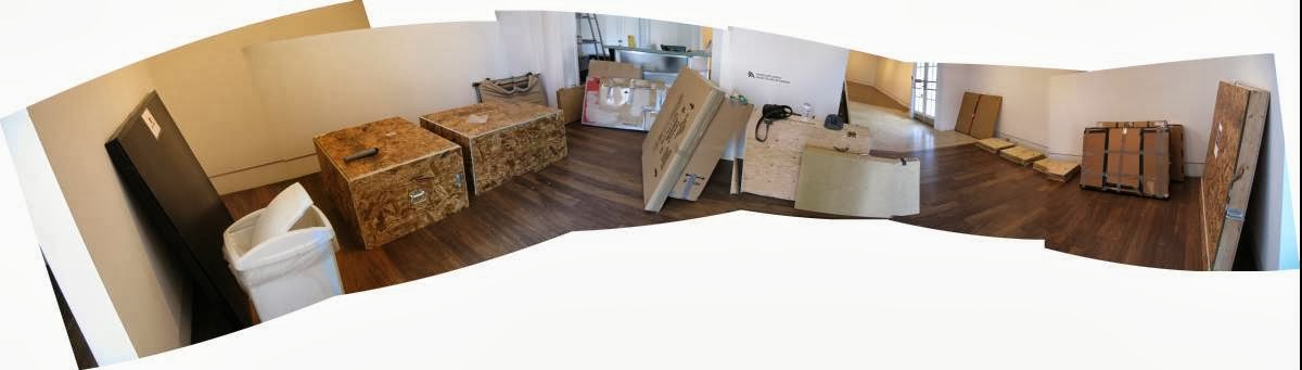 avant le vernissage, à l’entrée de la galerie. Que de boîtes !